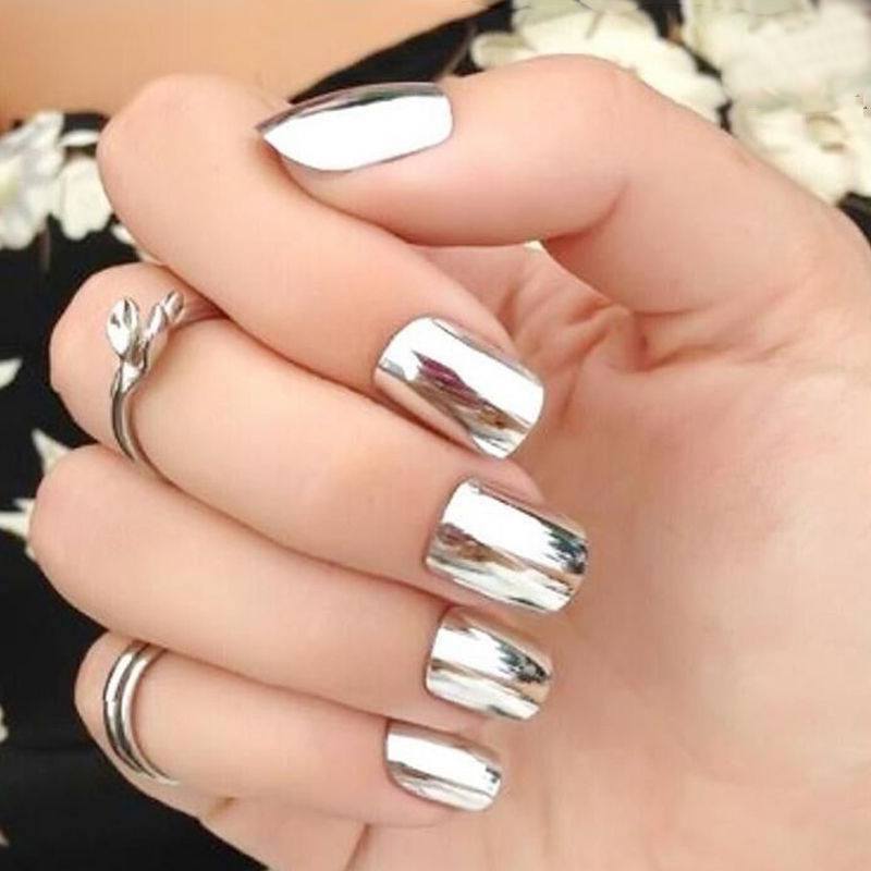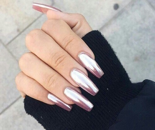 Go back to the future with sharply metallic manis – our favorite are gold and silver, of course. This works best on long nails, since that shine requites a bit of them getting that can make shorter nails look even stubbier. This look will transform you into an Ex Machina robo-babe, and works with a range of outfit options. Start with a single nail if you’re afraid the look is too glitzy.