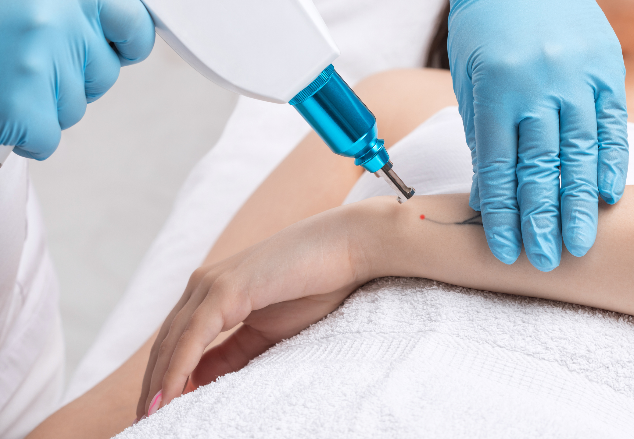 Many people think that removing tattoos via lasers is complicated, but it’s actually not. The laser is used on the tattoo, destroying colored ink with laser light. When tattoo removal laser light is applied to the skin, it heats up, shattering the ink that it reaches first within the skin. The shallowest layers of ink are removed, and then the deeper layers after that. This involves multiple treatments to fully penetrate the entire tattoo depth. After each treatment, the color will be noticeably faded.