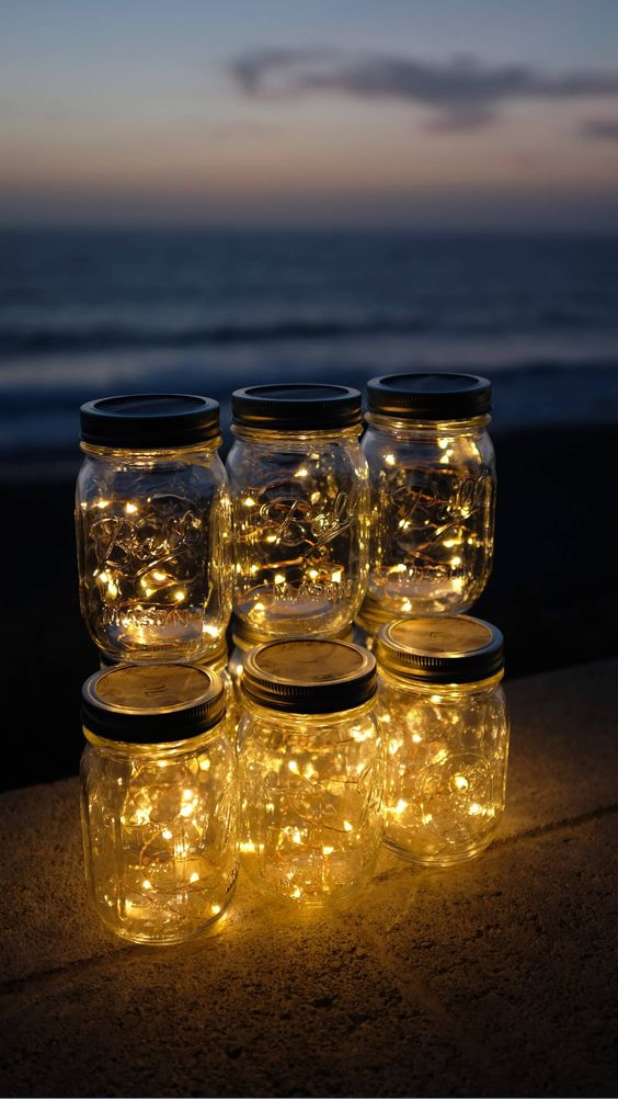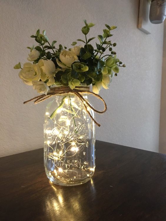 If you have copper wired fairy lights, you can place them inside mason jars and make them look like lanterns. They add a touch of magic wherever they sit. Plus they’re portable, flame-fee and lightweight, so you can put them anywhere you’d like some dim lighting and added decor, from your kitchen island to your entry pathway.