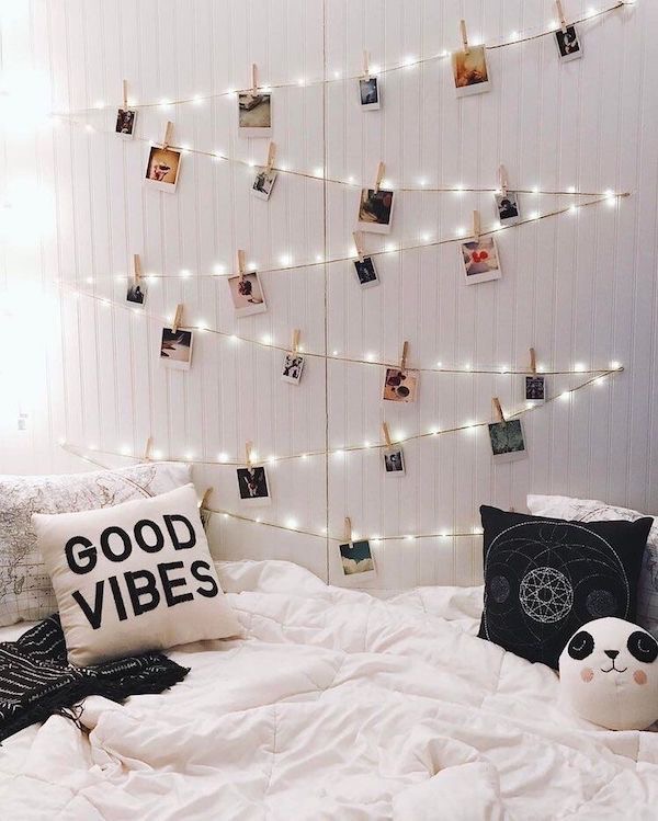 Hang your photos along a string light to surround yourself in amazing memories that are lit up and visible at all times. Lots of people struggle decorating their homes with artwork, but the photos hidden away on our phones and computers are begging to be printed out and strewn on walls, mantles, and more.