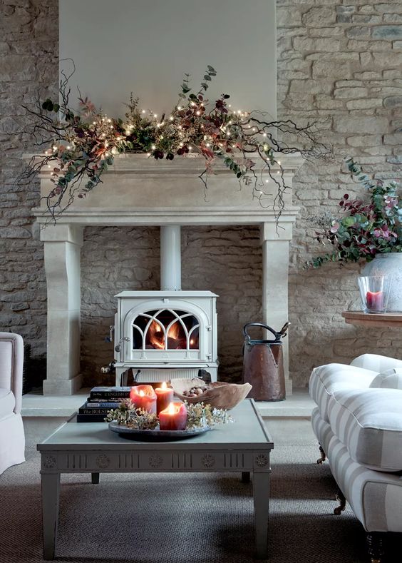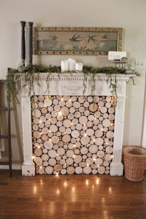 If you have a mantel, you can line it with Christmas lights, or place it in a unique pattern. It adds an extra source of light that draws eyes to the mantel and lets it act as a centerpiece. If you add decor like a wall mural or candles, it’ll enhance the effect even more. If your fireplace is flameless, you can wrap small logs in lights, weaving the string around to create a one-of-a-kind faux fireplace.