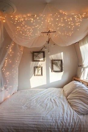Doing so will create a diffused and elegant effect that’s a lot nicer than staring into bulbs directly. It’s simple but stunning and can be seen from most parts of the room. This versatile style can be done in a bedroom or living area as well as a home office. If you have blinds rather than curtains, you can weave lights into your bed canopy. If you don’t have a canopy, drape long pieces of tulle