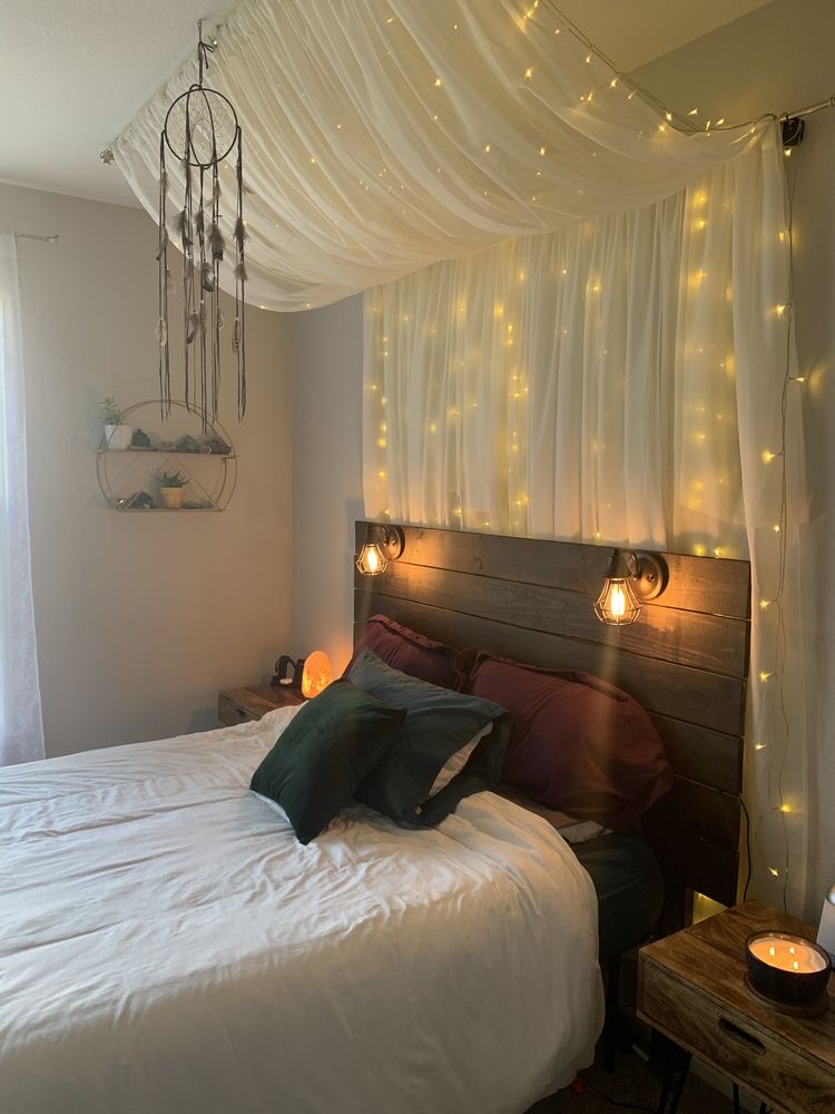 Make your bedroom more romantic by framing your headboard (or the wall that your headboard is on) and get a statement-making result. It has a feminine effect that can be made more gender-neutral with certain colors, and opting for smaller bulbs. Consider using a unique color of lights to match other aspects of your bedroom.