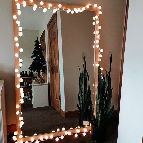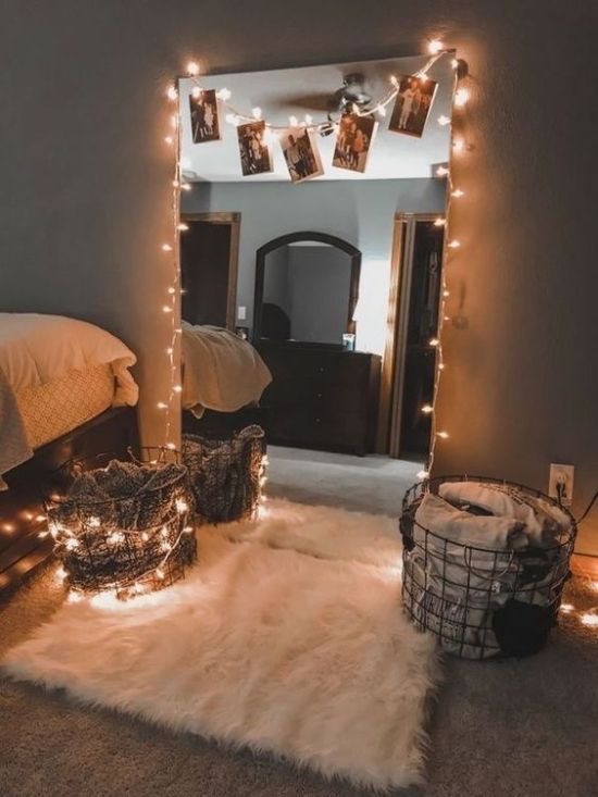 Turn your mirror into a lighting source by decorating your bedroom mirror with a string of fairy lights — simply drape them around the perimeter of the mirror. It’ll add a sense of glamour and has a Hollywood dressing room vibe, so that you’ll feel like Marilyn Monroe when you’re getting ready to go out. Plus, it’ll brighten up your reflection, adding a glow to your face and your bedroom.