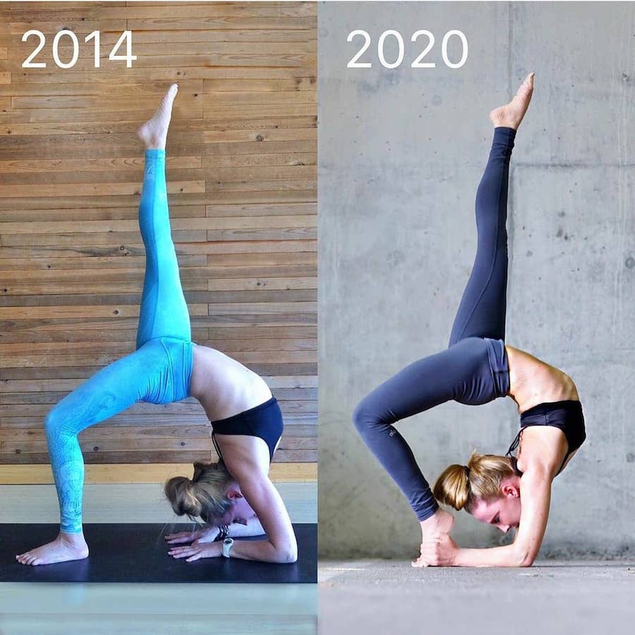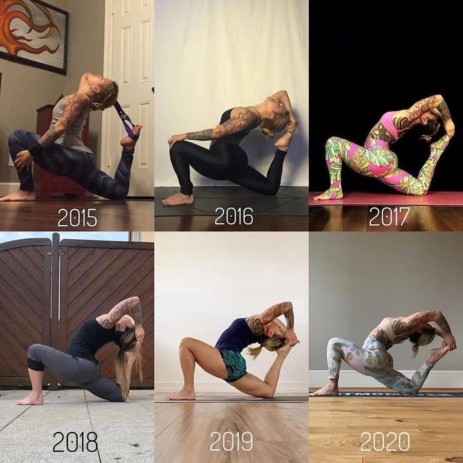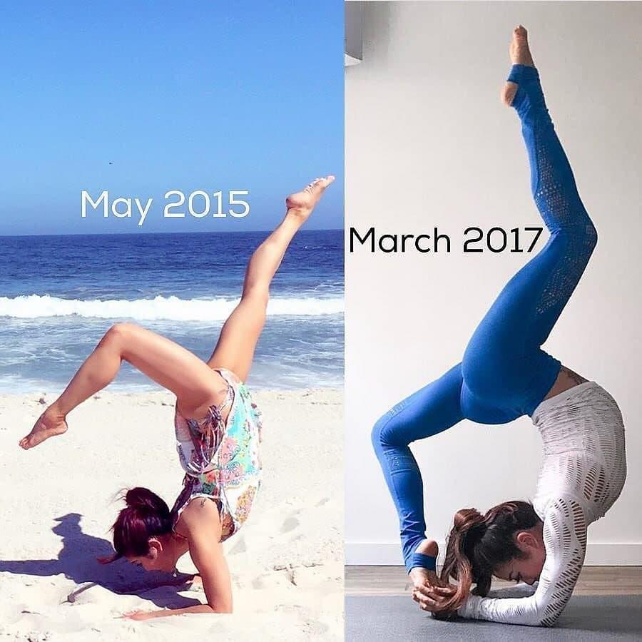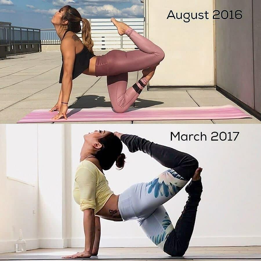 Yoga is one of those things you either hate or love. Some people say it’s a life saver, something that changed their life for the better and brought them a lot of peace, calmness and a lot of health benefits both mental and physical. Others can’t stand the idea. It’s too slow, too difficult, their body doesn’t bend that way and the whole spiritual side of it irritates them. And while yoga isn’t for everyone, one thing’s for sure, you can’t be forced into doing it. Everyone who enjoys yoga and practices it regularly has come to it on their own at the right time in their life. And if you’re discouraged by pictures of people doing complicated yoga poses and feel like you’ll never be capable of doing them – perhaps it’s just not your time yet. Because that level of flexibility and strength that you see practiced by yoga enthusiasts takes time and effort. It literally takes people years of trying little by little to achieve the results we then see in a cool Instagram post. So let’s take a look at some progress photos and get inspired.